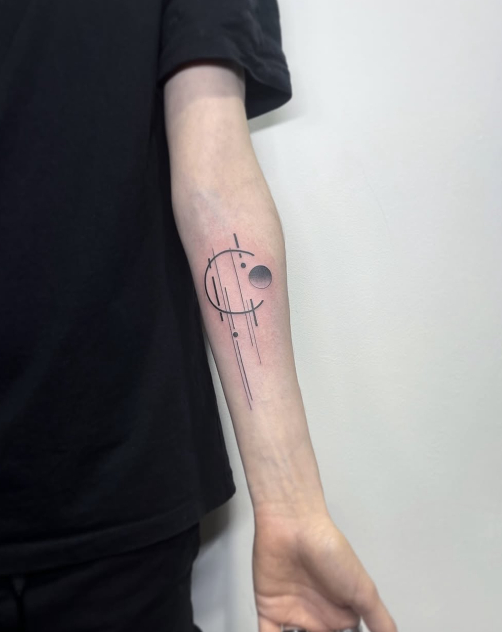 Tatuajes abstractos: Los tatuajes abstractos en técnica fineline son una forma excelente de expresar tu creatividad. Desde formas geométricas hasta patrones complejos, el tatuaje fineline te permite crear diseños únicos y originales.